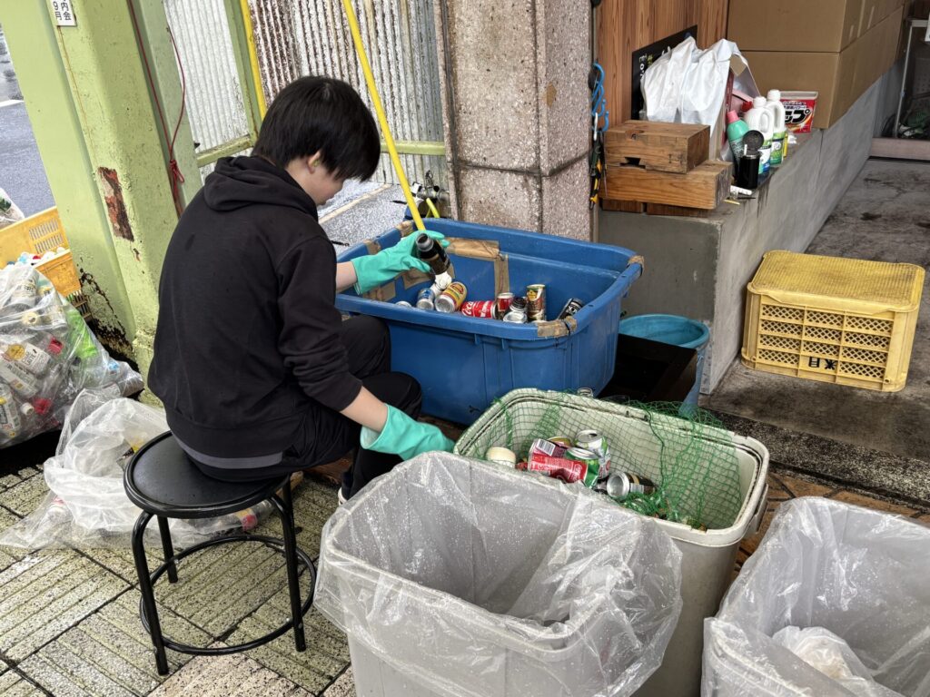 ジュース等の缶の洗浄に取り組んでいる利用者さんも一生懸命にやってくれています。