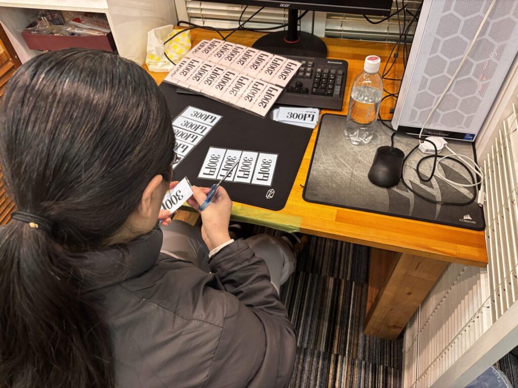 リサイクルショップ新宮の値札を作成中
